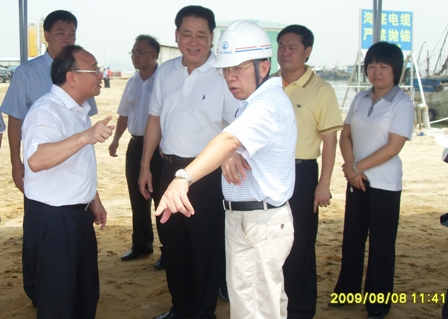 8月8日,廣東省省委常委、組織部部長胡澤君,湛江市市委書記陳耀光,市長阮日生一行到三公司湛江港寶滿集裝箱碼頭一期工程工地視察,對寶滿一期工程的施工進度、規范化管理以及中交四航局顯示出的綜合實力給予充分肯定。