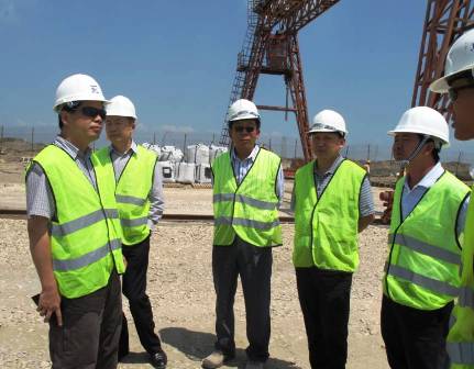 8月27日,四航局總工程師呂衛(wèi)清、中國(guó)港灣總工程師趙玉起在一公司總經(jīng)理江和明的陪同下到埃及塞得東港項(xiàng)目部檢查指導(dǎo)工作,呂總一行查看了攪拌站、地基處理、地連墻等施工現(xiàn)場(chǎng),并聽取了項(xiàng)目部領(lǐng)導(dǎo)班子的匯報(bào)。