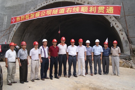 丹平項目部從2008年11月15日開工以來,集中資源克服了工期緊、拆遷難、用地難、施工難度大、環保要求高、資金緊張等困難,主動配合龍崗區南灣街道辦等地方部門開展征地拆遷和管線遷移工作,力爭從貓公壩隧道出口狹小的區域打開工作面,短進尺、弱爆破、早封閉,精心組織施工,合理安排工期,在保質量保安全的前提下,歷時285天,比原計劃提前15天時間實現了右洞貫通,是丹平快速路一期工程全線首個進洞和首個順利貫通的隧道,為深圳市政府"2009年旱季大干120天勞動競賽"活動作出了表率。