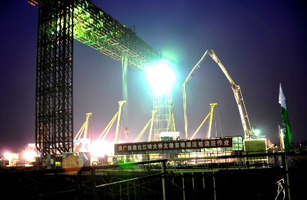 北江特大橋為貴廣鐵路全線控制性工程,主橋采用鋼桁梁斜拉橋結構。此次澆注的244#-15#樁是貴廣鐵路全線直徑最大、最長的樁基,也是四航局成立以來施工的樁長最長、直徑最大的樁基,被譽為"貴廣第一樁"。