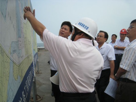 9月10日,海南省發改委副主任葉章和一行在業主的陪同下,到三公司海口港馬村港區擴建一期工程項目部視察。