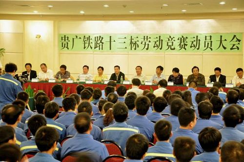 此次勞動競賽活動是為深入推進學習實踐科學發展觀活動,全面貫徹"貴以道惠民,廣以和致遠"核心理念,嚴格落實貴廣鐵路"六位一體"建設管理要求而組織實施的,旨在通過"比安全生產,創平安佳績;比工程質量,創優質精品;比工程進度,創一流效率;比科技攻關,創工藝工法;比標準化建設,創文明工地;比環境保護,創綠色通道;比廉政建設,創陽光工程"等"七比七創"勞動競賽活動,進一步激發員工勞動積極性和創造性,全面掀起大干快上施工高潮,確保又好又快建設貴廣鐵路,實現"創新、精品、綠色、和諧" 貴廣的宏偉目標。