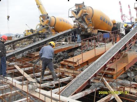 嵩嶼項目部本著"低成本、高效率"的原則,在胸墻澆注施工中放棄了常規施工方法,改用溜槽分三層進行澆注,有效節約了施工成本。