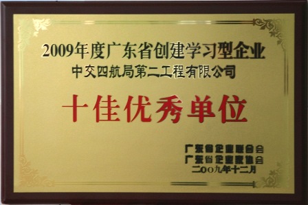 在2009年企業發展高峰會上,二公司榮獲"廣東省創建學習型企業十佳優秀單位"稱號,二公司黨委書記萬軍杰榮獲"廣東省創建學習型企業十佳突出貢獻獎"。