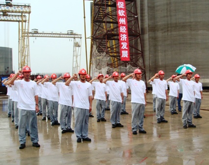 中交股份團委書記趙鵬、四航局黨委副書記張猛要求欽州港項目部青年大力弘揚"艱苦創業,崇尚實干,善于學習,銳意創新,團結奉獻,爭創一流"的青年突擊隊精神,安全、優質、高效地完成欽州港各在建工程,為同行樹立榜樣,向欽州人民、向業主交上一份滿意的答卷。