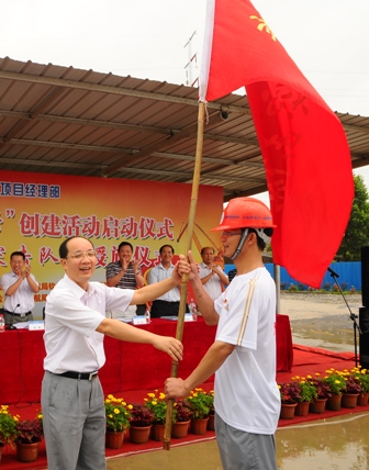 6月27日上午,四航局欽州港項目部舉行了隆重的創建"青年文明號"啟動儀式暨"青年突擊隊"授旗儀式。共青團廣西壯族自治區委書記李澤,中交股份團委書記趙鵬,欽州港務集團副總經理張震,廣西八桂監理公司總監周紀輝,欽州市人大常委、團委書記申榮洲,四航局黨委副書記張猛,三公司總經理何勇、黨委書記陳浩平等領導出席了儀式。