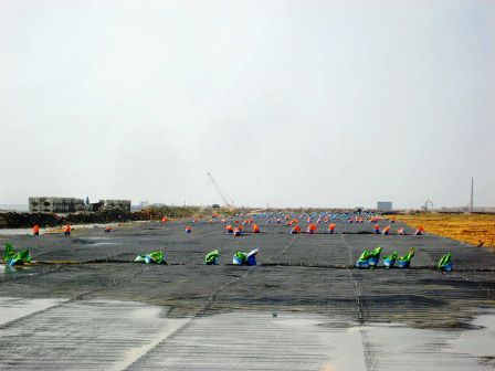 該工程位于湛江港湛江灣西北側(cè),南接湛江市霞山區(qū)工業(yè)園寶滿區(qū),北側(cè)毗鄰湛江港油碼頭,地基處理總面積為95.45萬平方米,采用真空聯(lián)合堆載預(yù)壓處理、后期在軌道區(qū)域內(nèi)施打水泥攪拌樁的施工方案。