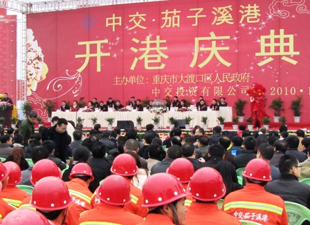12月18日,四航局參建的重慶茄子溪港舉行開港儀式。重慶市人大常委會副主任鄭洪、政協副主席陳萬志,中交投資公司總經理李茂慧、中交投資公司副總經理劉成云、四航局副總經理周達培、四航局三公司主要領導等出席了開港儀式。