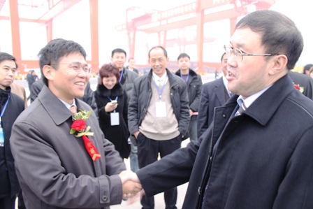 開港儀式后,宜賓市市委書記楊冬生與四航局總經理孫國強親切交談。楊冬生書記稱贊四航局在宜賓港建設中創造了"宜賓速度,四川奇跡",是一支關鍵時候沖得上、頂得住的硬隊伍,并對四航局宜賓項目部保質、保量、安全完成開港試營運的重任給予充分肯定和高度贊賞。
