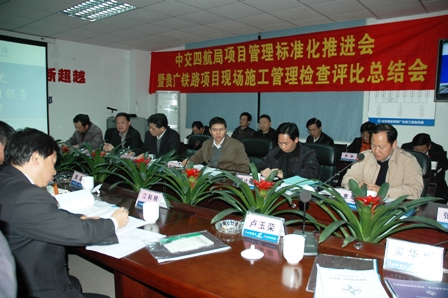 1月28日,四航局在貴廣指揮部召開項目管理標準化推進會暨貴廣鐵路項目現場施工管理檢查評比總結會,四航局領導孫國強、周達培、呂衛清、李惠明、張猛,總經理助理張建華、方嘉煊,公司本部有關負責人,一、二、三公司和研究院相關領導,貴廣指揮部及所屬項目部、中心試驗室領導和有關人員約60人參加會議。