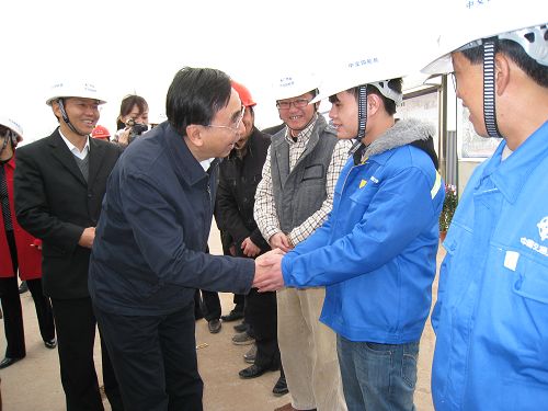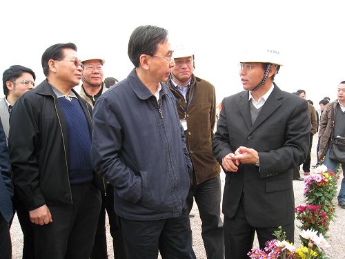 2月1日,廣東省委常委、常務副省長朱小丹在佛山市領導和四航局總經理孫國強等陪同下,到四航局貴廣工地視察慰問。