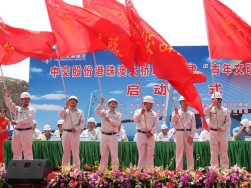 中交股份把激發青年攻堅克難的斗志作為共青團和青年工作與企業經營生產緊密結合的抓手,放在黨政中心工作的重要位置。如何調動好、保護好、發揮好青年人員的積極性和創造性,發揮共青團組織的生力軍和突擊隊作用一直是中交股份團委工作的著眼點和出發點。這次“青年文明號”的創建活動,就是想通過創建“一流的團隊、一流的人才、一流的業績、一流的服務、一流的文化”,促進青年人成長成才,充分發揮團員青年在急、難、險、重任務中的突擊作用,在生產中發揮主力軍、生力軍作用。儀式上,全體青年突擊隊員表示,將緊緊圍繞施工生產目標任務,發揮青年突擊隊精神,在急難險重任務中沖鋒在前,以昂揚的斗志投入到港珠澳大橋的施工中,按期拉開港珠澳大橋的攻堅帷幕,確保工程建設的質量、安全和進度,向港珠澳人民交一份滿意的答卷。