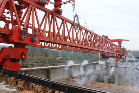 溫河大橋主橋是該項目的重點控制性工程。為確保溫河大橋按期交工,項目部統籌安排,利用冬季施工增建一座T梁預制場,有效加快了制梁速度,并進場兩臺架橋機從大橋兩端同時架梁,小里程方向架橋機已調試完成,架梁工作計劃隨后展開。