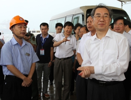 7月12日,廣西壯族自治區主席馬飚在防城港市委書記禤沛鈞、市長莫恭明、防城港務集團總經理謝毅等領導的陪同下,到三公司承建的防城港403-407號泊位碼頭項目視察指導工作。