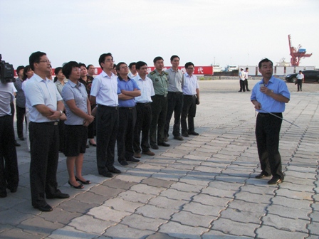 考察團一行聽取了謝毅總經理的匯報,詳細了解了港區規劃、碼頭建設等情況,并對即將完工的403—407號泊位碼頭建設情況表示滿意。