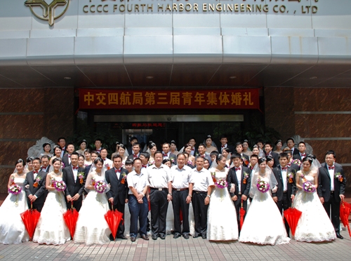近年來(lái),中交四航局每年招收應(yīng)屆畢業(yè)生300多人,現(xiàn)有員工近6000人,其中35歲以下青年3252人,年輕人已成為了企業(yè)的中堅(jiān)力量。四航局黨委堅(jiān)持以人為本,推進(jìn)和諧四航建設(shè),并積極探索黨建帶團(tuán)建有效途徑,先后榮獲“全國(guó)先進(jìn)基層黨組織”和“中央企業(yè)黨建帶團(tuán)建工作先進(jìn)單位”。因?yàn)榻ㄖこ唐髽I(yè)工作特點(diǎn),來(lái)到中交四航局的年輕人剛剛從學(xué)校畢業(yè)便走到了施工一線(xiàn),他們每天面對(duì)的是圖紙、機(jī)械、挑燈夜戰(zhàn),正因?yàn)橛辛怂麄儯髽I(yè)煥發(fā)著生機(jī)和活力。為增強(qiáng)青年員工的凝聚力,體現(xiàn)和諧四航理念,四航局結(jié)合施工企業(yè)工作特點(diǎn),從2007年開(kāi)始,局團(tuán)委每?jī)赡瓴邉澖M織一屆以“和諧四航,真愛(ài)永恒”為主題的青年集體婚禮活動(dòng),至今年為止,共舉辦了三屆。集體婚禮的成功舉辦,體現(xiàn)了四航局對(duì)青年員工的關(guān)愛(ài)之情,增強(qiáng)了青年員工對(duì)企業(yè)的歸屬感和忠誠(chéng)度。