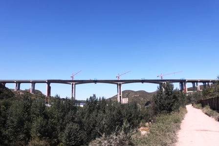 該橋為全線控制性工程,大橋全長860米,主橋為65+2×120+65m預應力砼連續(xù)剛構(gòu),是山西省首座雙向六車道大跨徑橋梁。自開工以來,太陽八標項目部克服征拆難、工期緊、技術(shù)難度大等不利因素,精心組織,不斷優(yōu)化施工方案,加大人力、物力及設(shè)備投入,同時與設(shè)計院和業(yè)主積極溝通,通過變更樁長、合攏段施工順序等措施切實加快施工進度,受到山西省交通廳和業(yè)主的充分肯定。