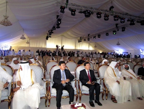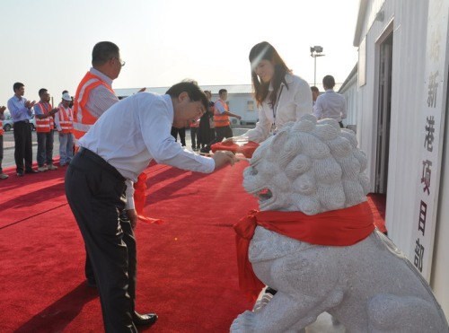 10月10日,中交股份董事長周紀昌在中港總經理孫子宇、四航局總經理孫國強、副總經理李惠明等陪同下,到多哈新港項目檢查指導工作并參加開工奠基儀式。