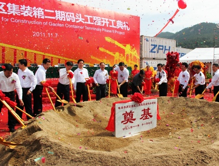 開工典禮上,何寧卡代市長(zhǎng)、楊潤(rùn)貴董事長(zhǎng)、錢乃駿總裁分別進(jìn)行了熱情洋溢的講話。他們對(duì)珠海港近幾年來的發(fā)展和成績(jī)給予了充分的肯定,并希望珠海港人能夠再接再厲,再創(chuàng)輝煌,讓珠海港成為國(guó)內(nèi)乃至世界的一流大港。隨后,珠海市委書記甘霖宣布珠海港高欄港區(qū)二期集裝箱碼頭項(xiàng)目開工。