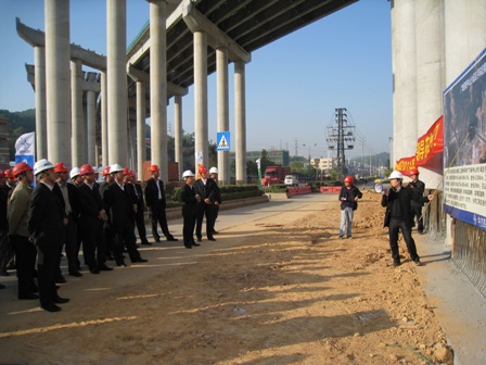 交流會期間,與會人員到一公司廣珠西線中山四標項目現場觀摩,參觀麻斗高架橋、深灣隧道施工現場,聽取項目部橋梁高墩、雙連拱隧道施工工藝介紹。一公司總工程師榮勁松在交流會上展示了一公司近年來橋梁上部結構施工技術成果。與會人員就如何更好地開展技術交流活動進行研討,提出很多有建設性的意見和建議。
