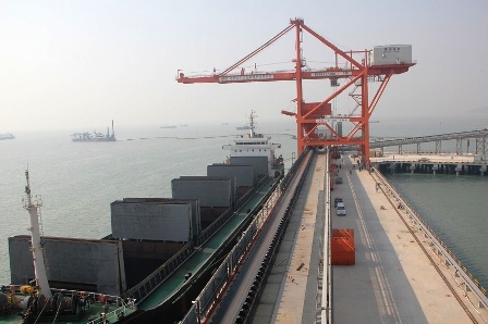 12月17日,一艘2萬噸級滿載煤炭的貨輪抵達珠海干散貨碼頭,通過岸上的卸船機把煤炭抓卸到轉動的皮帶上,直接輸送到碼頭后方堆場。經過3天的時間,2萬噸荷載煤炭全部輸送到碼頭后方指定的堆場里,標志著二公司承建的珠海干散貨碼頭1號泊位試運行成功,為12月28日正式投產奠定了良好基礎。