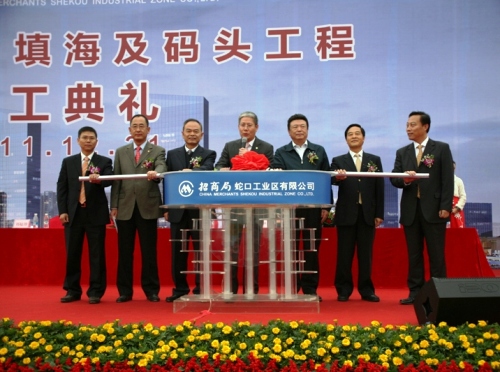 12月21日,蛇口工業(yè)區(qū)太子港項目填海及碼頭工程開工典禮在深圳蛇口港隆重舉行。 中交股份總裁劉起濤、副總裁陳云,招商局集團總裁李建紅,蛇口工業(yè)區(qū)有限公司總經(jīng)理楊天平,四航局總經(jīng)理孫國強等出席儀式。招商局董事長傅育寧宣布項目開工,副總裁孫承銘主持開工典禮。中交股份總裁劉起濤、副總裁陳云、招商局董事長傅育寧、四航局總經(jīng)理孫國強等領導推動“推桿”,共同啟動開工儀式。