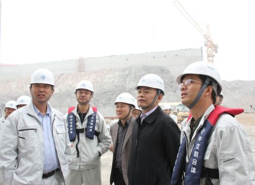 在牛頭島沉管預制廠施工現場,陳云副總裁聽取了關于沉管預制廠整體布局、施工工程進度、沉管預制等關鍵工藝以及沉管預制設備、人員、管理制度等工作準備情況的匯報,深入施工深塢現場,查看了正在進行鋼扶壁安裝的塢門大沉箱和正在緊張調試的高壓發電機房;在鋼結構廠房,陳云副總裁一行參觀了即將開始足尺模型試驗的2#沉管澆筑區。