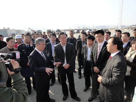 2月1日下午,惠州市市長陳奕威一行在惠州國際集裝箱碼頭有限公司總經理徐志全的陪同下,到二公司承建的惠州國際集裝箱碼頭工程項目考察。