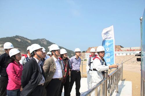 3月16日,國資委綜合局副局長段曉峰在中交股份財務總監傅俊元、預算考核部總經理單會川、中交港珠澳大橋島隧項目總經理部總經理林鳴、黨委副書記楊增林等人陪同下,到港珠澳大橋島隧工程考察調研。