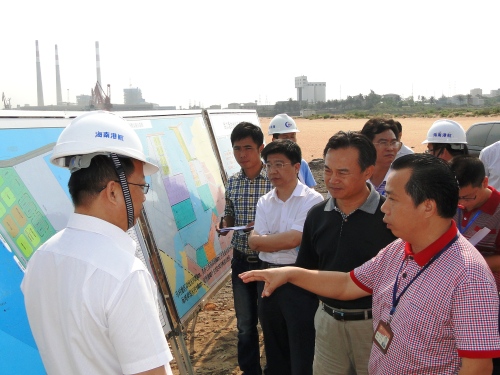 4月17日,海南省海洋與漁業廳廳長趙中社一行到海口港馬村港區擴建二期項目調研。