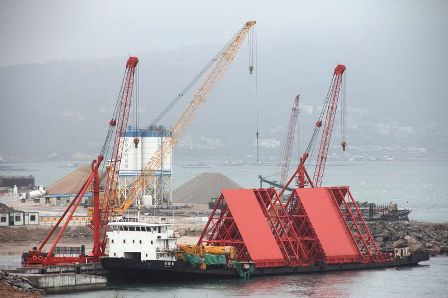 港珠澳大橋沉管預(yù)制廠淺塢鋼閘門(mén)首批部件運(yùn)達(dá)