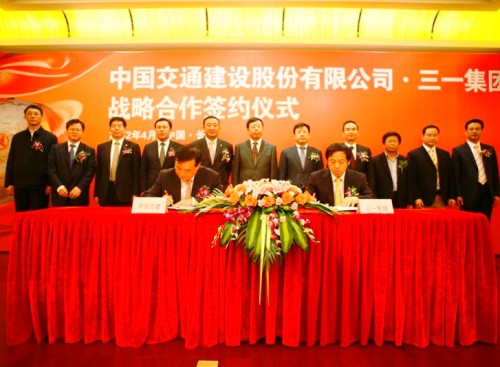 4月23日,中國交通建設股份有限公司與三一集團有限公司戰略合作簽約儀式在湖南長沙舉行。