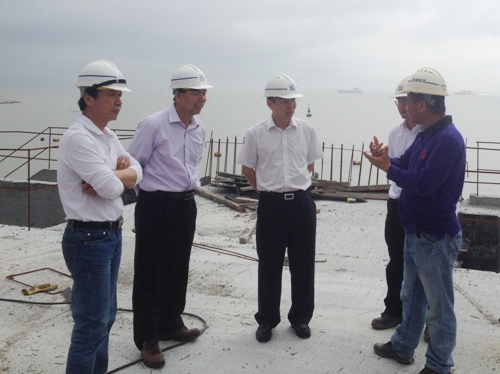 日前,四航局總經理孫國強在澳門振華工程部謝偉強經理的陪同下,到澳門氹仔新碼頭項目部檢查指導工作。