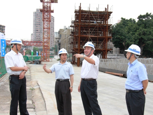 5月22日,廣東省直機關工委副巡視員鐘國輝一行,在四航局董事長、黨委書記梁卓仁的陪同下,到洲頭咀項目部調研指導工作。