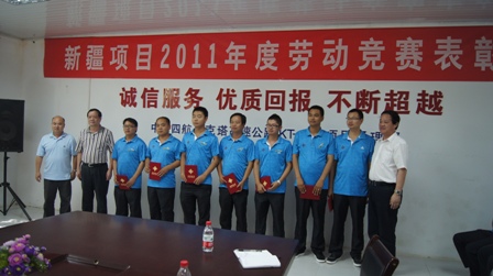 又訊 7月20日,新疆項目部召開2011年度勞動競賽表彰大會。廣東省總工會黨組成員、紀檢組長廖汝捷,廣東省海員工會主席康盛忠、副主席周士超,廣州海員俱樂部主任鄒偉光,四航局黨委副書記張猛,四航局高級顧問肖干生,四航局一公司黨委書記陳國良等領導出席會議,并分別為先進集體、先進個人頒發榮譽證書。