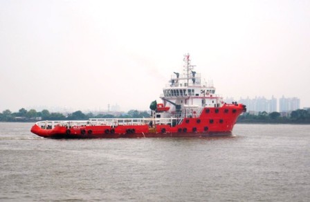 該船總長60.5米,型寬14.6米,型深5.5米,總噸1537噸,系柱拖力67.5噸;航行無限航區(qū);主要用于海上石油平臺的拖帶、錨錠作業(yè)、消防、安全救助等多用途工作船;入級法國船級社(BV)。