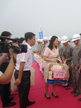 10月11日,共青團廣東省委書記曾穎如在湛江市委副書記、政法委書記、社工委主任麥教猛,團湛江市委書記雷電等陪同下,到四航局承建的湛江鋼鐵基地30萬噸級散貨碼頭視察指導工作。