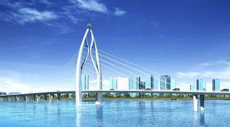 該工程位于漳州招商局開發區南炮臺附近,是完善雙魚島及漳州開發區路網規劃,滿足雙魚島與附近陸域連接的重要配套設施。雙魚島為國內首座大型離岸式生態人工島,陸島連接橋建成后,不僅為雙魚島提供更加快速、便捷的過海通道,并且將進一步改善漳州開發區及廈門港區的交通網絡。該橋梁為海上斜拉橋工程,包括陸島連接橋的主橋、引橋及主橋、引橋上的給水、電力管線工程及陸島連接橋的景觀、路燈工程,路線全長1010.8米。