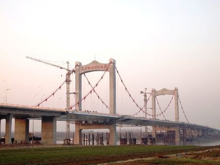 該大橋全長1778米,四航局承建該橋主橋和北岸引橋部分,其中主橋系采用主跨為200米的雙塔雙索面三跨連續半漂浮體系自錨式懸索橋。該橋的正式通車對于緩解蚌埠市淮河南北兩岸的交通壓力、促進兩岸經濟社會的平衡發展有著極大的促進作用,具有重大的經濟價值和社會價值。
