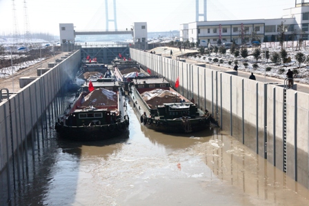 2012年12月31日,歷時(shí)三年的鹽河航道整治工程交工通航,540萬淮安人民借港出海的“藍(lán)色夢(mèng)想”終于成真。