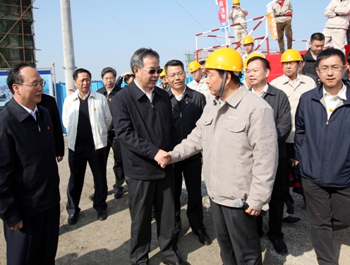 1月15日,中央政治局委員、廣東省委書記胡春華一行在湛江市委書記劉小華、市長王中丙、常務副市長趙志輝、張榮輝等的陪同下,到三公司承建的湛江港寶滿集裝箱碼頭工程、湛江鋼鐵基地項目30萬噸級散貨碼頭工程等重點建設項目視察。