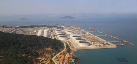 該工程2010年11月23日開工,設計年吞吐量為917萬噸,主要承擔原料油、汽油、柴油等裝卸任務。3—6號泊位碼頭和引橋由工作平臺、系纜墩、鋼便橋等組成,總岸線長度為1150米,工作平臺均通過單引橋同后方罐區連接,采用高樁梁板結構;建筑工程包括消控樓、3號與6號配電間等。
