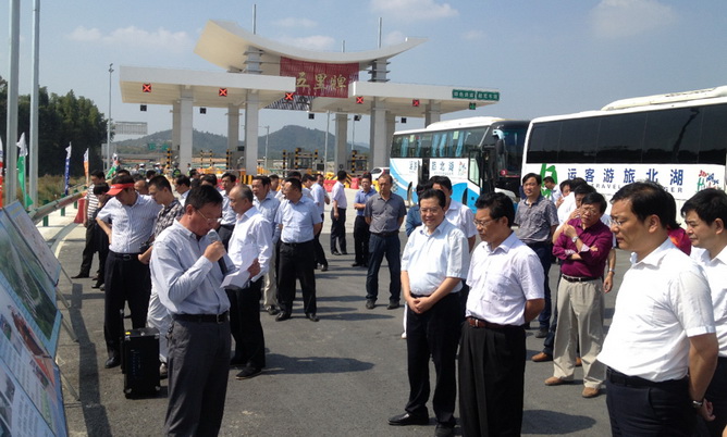 10月10日,咸寧市委書記任振鶴、市長丁小強率咸寧市第三季度經濟工作拉練檢查團到通界高速公路檢查,咸寧市四大班子領導,咸寧經濟開發區、各縣市區黨政負責人和市直相關部門主要負責人參加。