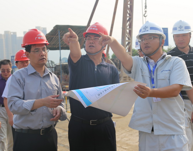 10月14日,廣東省鐵路建設(shè)投資集團董事長朱耀忠一行在廣珠城際公司總經(jīng)理余國武陪同下,到四航局珠海城際項目考察調(diào)研。