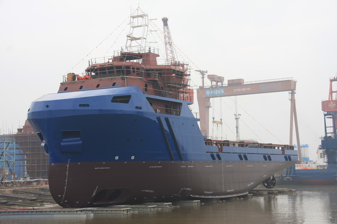1月26日,航通船業建造的一艘80米海洋平臺供應船順利下水。