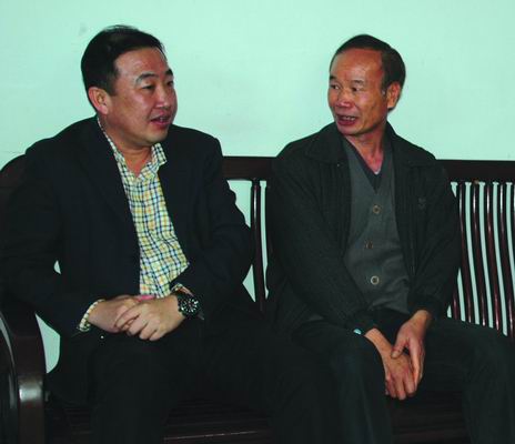 四航局董事長、黨委書記梁卓仁慰問多次獲得先進職工榮譽的大型汽車吊司機周仲高師傅,勉勵他繼續發揚成績,為四航局的安全文明生產作出更大貢獻。