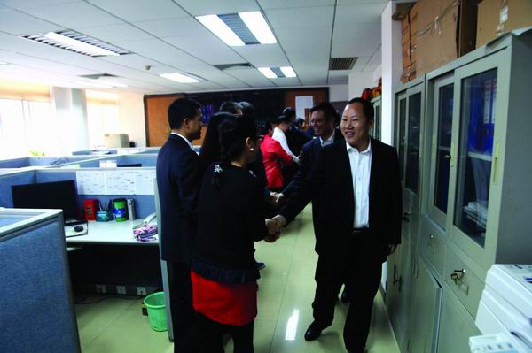 春節后首個工作日,四航局領導班子成員給四航局本部全體職工拜年,致以新春問候,送上美好祝福,鼓舞士氣。圖為四航局總經理李惠明與職工親切握手。