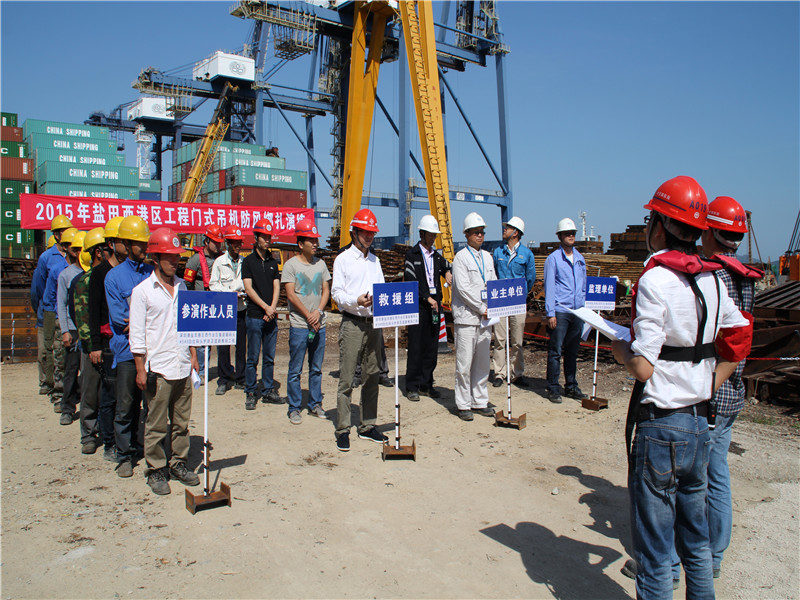二公司鹽田西港區#5、#6泊位項目開展門式吊機防風綁扎演練