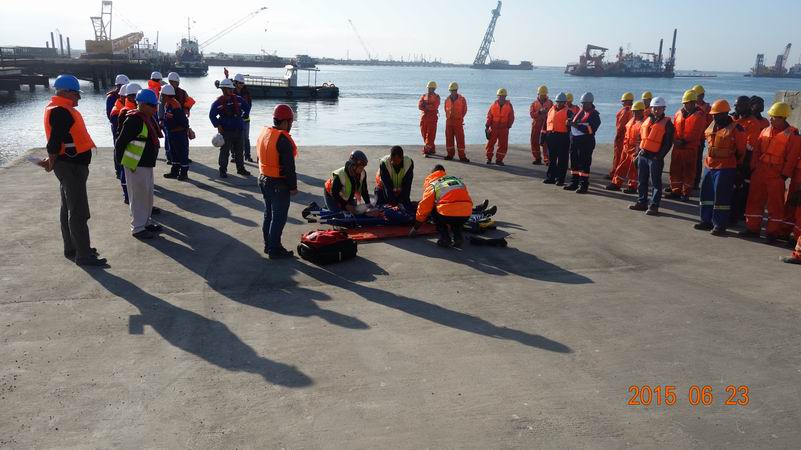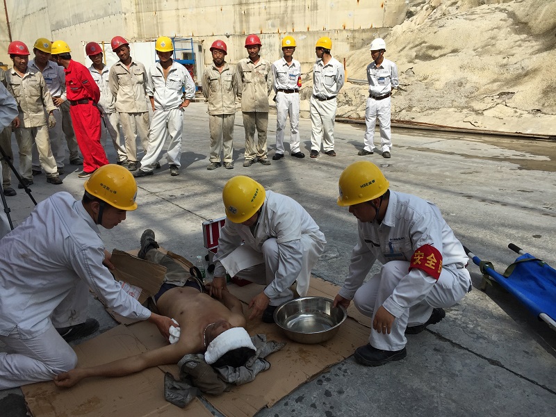 應急救援,演練逼真。各單位按照年度應急演練計劃,以應急周活動為契機,采取現場演練、桌面推演等形式開展了各項應急演練活動,鍛煉了應急救援隊伍快速反應能力,檢驗評估了項目施工生產安全事件應急預案的科學性和可操作性。二公司印尼Karang Taraje港口項目海嘯地震桌面應急演練、港珠澳大橋島隧項目人員中暑急救演練、沙特吉贊取排水項目 “人員緊急疏散”演練;三公司??陧椖坎恐惺罴跋缿毖菥殹J州項目部施工人員落水救援聯合演習、忠萬高速項目部消防安全應急演練;航通船業還開展了止血與包扎實操練習、急救理論培訓、作業人員人工呼吸及心肺復蘇等演練。