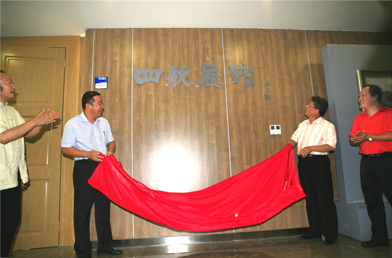 在“四航展館”揭牌儀式上,四航局董事長、黨委書記梁卓仁與中國美協副主席、全國政協委員、廣東省美協主席、廣東省文聯主席許欽松在四航局總經理李惠明、鄭州市美協主席白金堯等見證下,為“四航展館”揭牌,這標志著反映四航局65年的發展歷程,承載著四航人不懈追求,體現四航人的精神風貌的“四航展館”正式建成投入使用。
